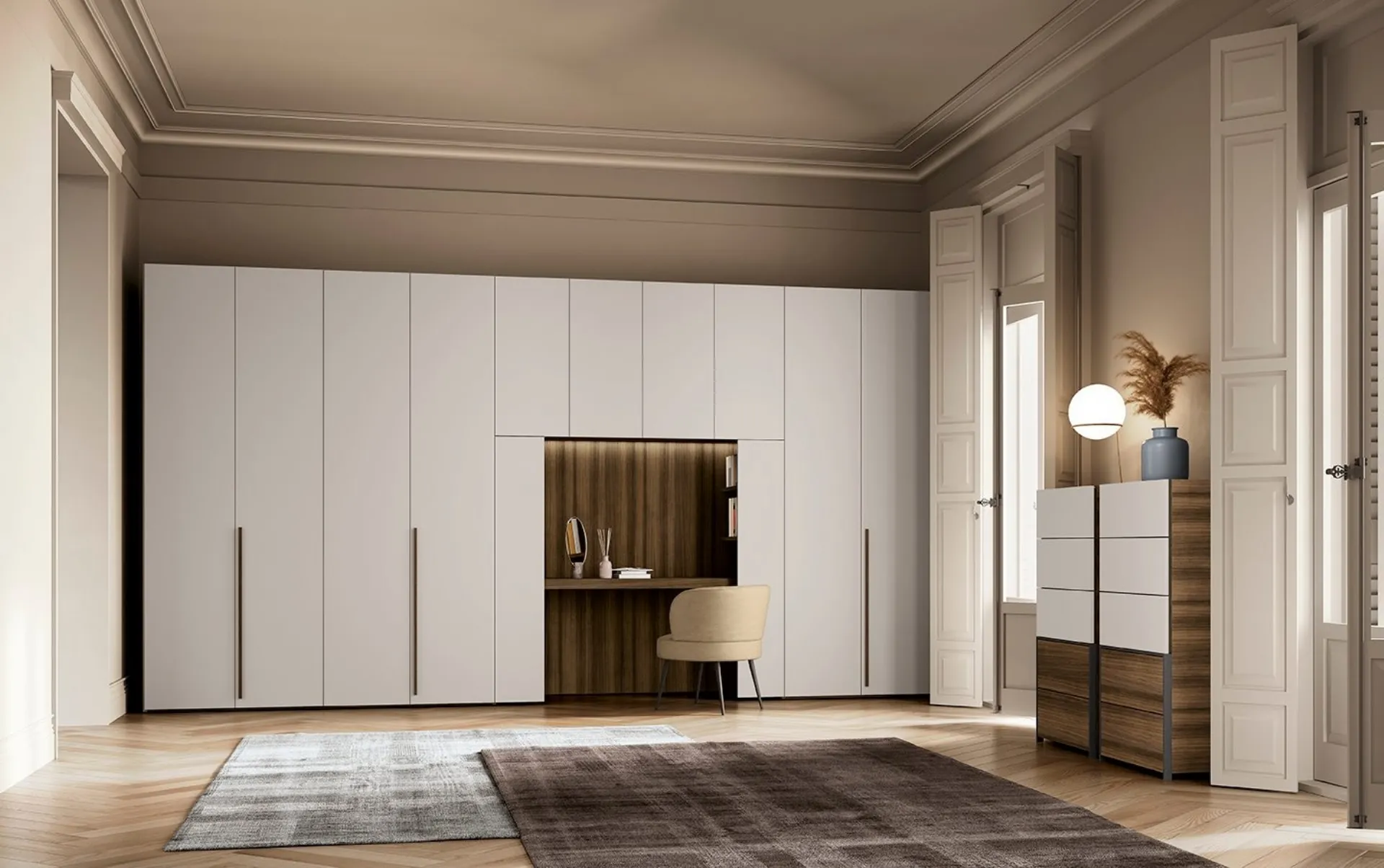 Armadio con ante battenti per spazi moderni modello Golf W06 Concreta Pul: scopri le soluzioni a muro per la zona notte