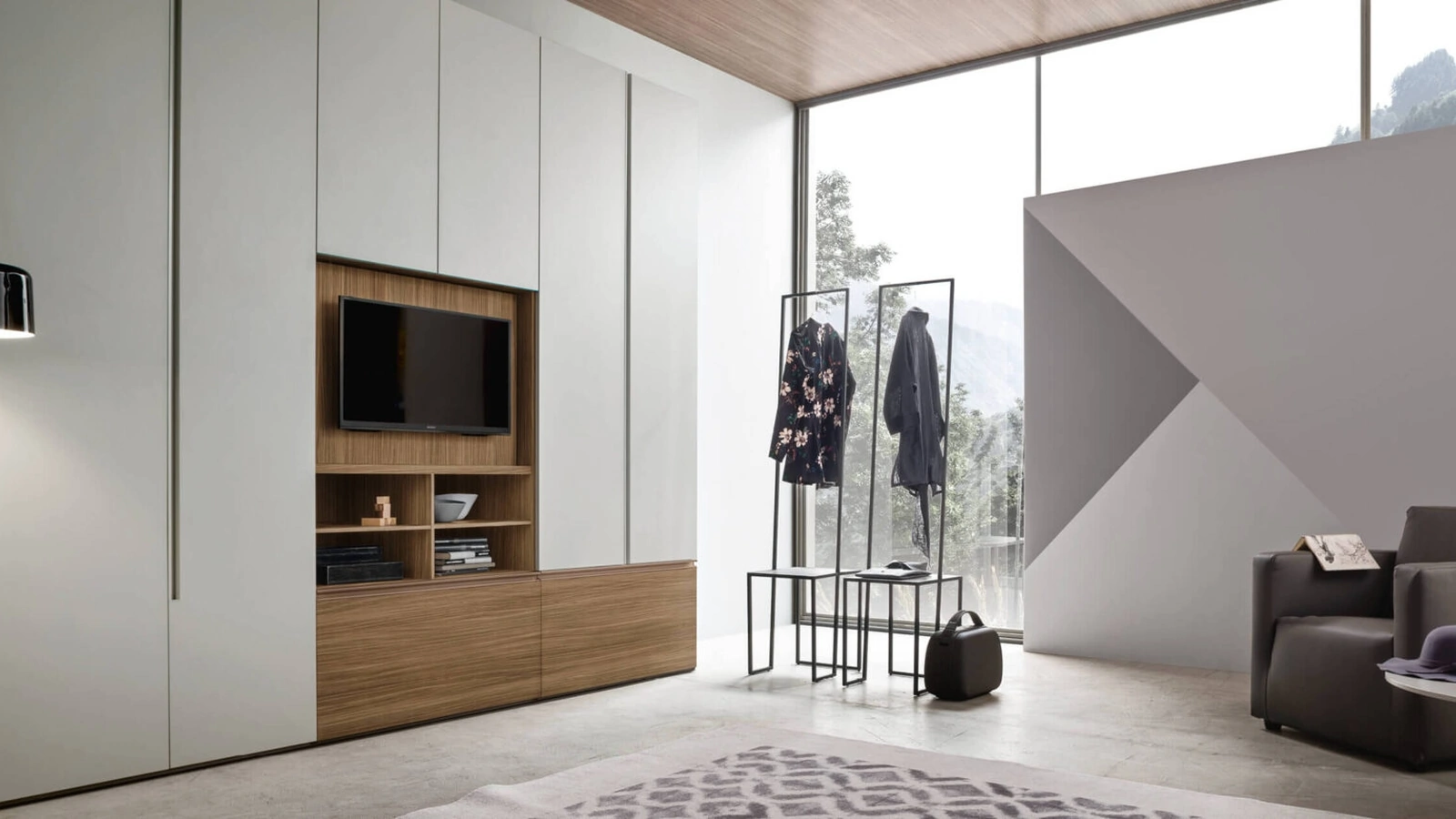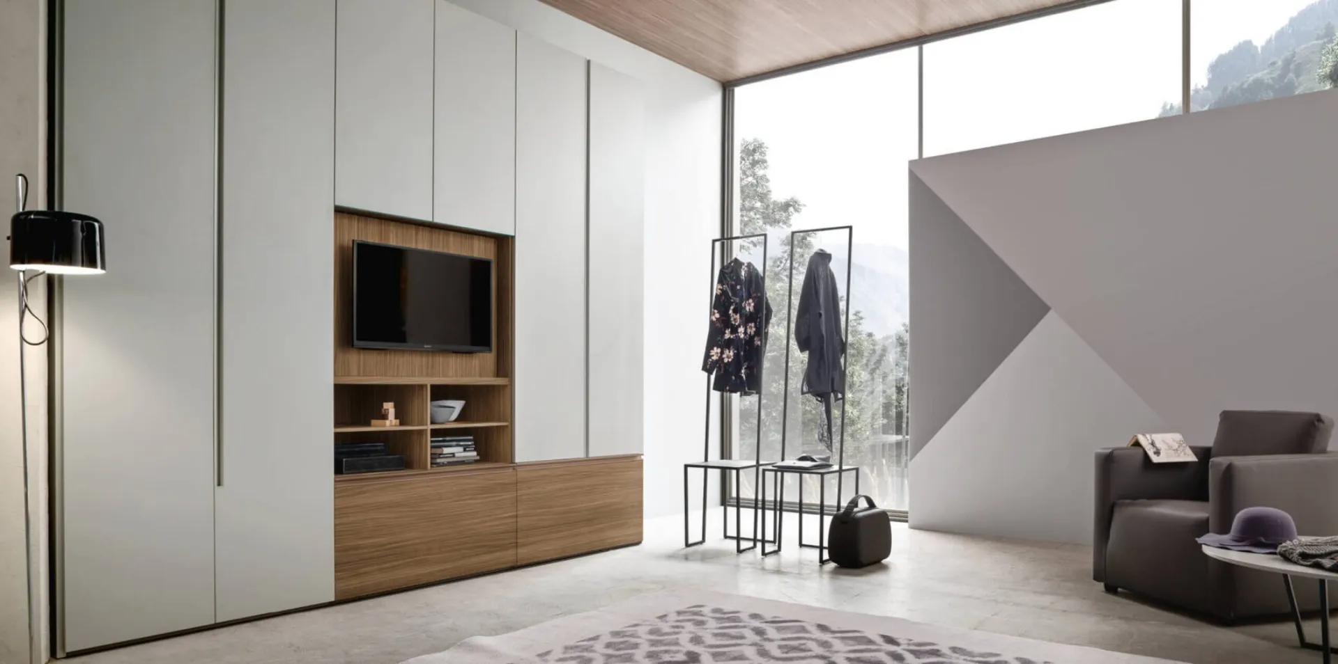 Durata e comfort sono gli aspetti che, di pari passo con una buona resa estetica, connotano tutti gli Armadi a muro moderni della firma Maronese. Se desideri ricreare una stanza pratica e sofisticata, compila il form o visitaci per ottenere infromazioni, tante idee per la casa nell'ambito dell'Arredamento Casa. Armadio Step Up con anta TV girevole di Maronese: se desideri arredatori professionisti per preventivi e progetti, realizza con noi la casa che hai sempre voluto. Visitare il nostro negozio significa toccare con mano molti mobili del noto e rinomato brand, sempre di grande design. Una diversificata disponibilità di arredi in melaminico come questo guardaroba con ante battenti in foto.