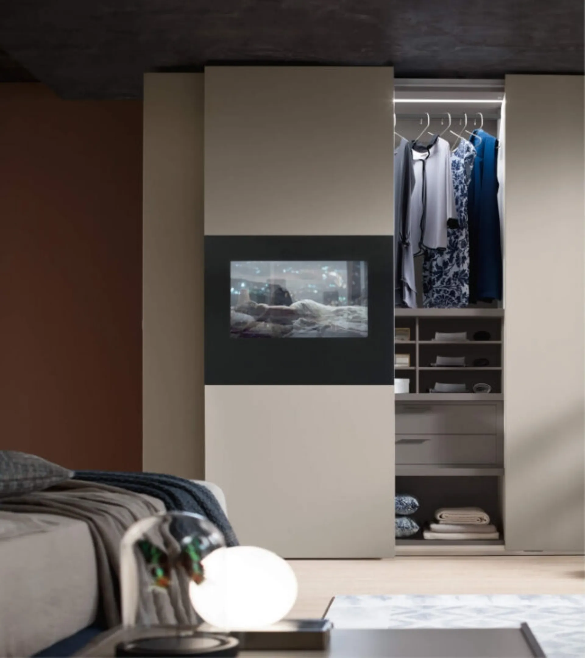 Per trovare idee nel completare l’arredo, vieni da noi e scopri un ricco catalogo di mobili e oggetti accessori tra cui questo armadio esclusivo e versatile. La nota firma Maronese dispone di una ampia produzione di Armadi a muro con ante scorrevoli, definiti da progetto esclusivo e funzionalità contemporanea. Armadio con TV Wallblog3 di Maronese: compila il form per informazioni e preventivi e arreda la zona notte come l'avevi sognata. In showroom ti attendono le più accattivanti proposte di Arredamento Casa, comò e comodini sul mercato, vari per stile, dimensione e tonalità per ultimare ottimamente una camera da letto pratica e sofisticata.