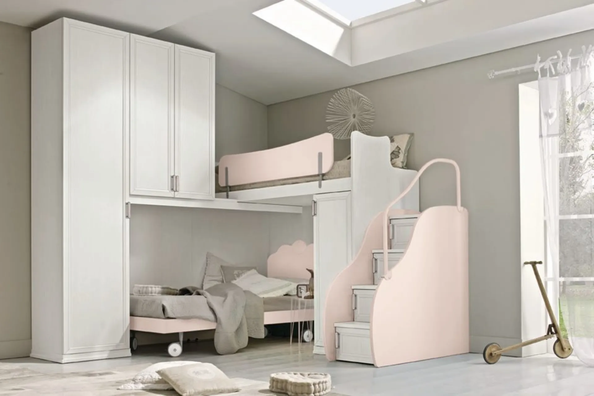 Modello Arcadia AC023 con finitura in melaminico pensata per bambine: scopri tutte le soluzioni a soppalco