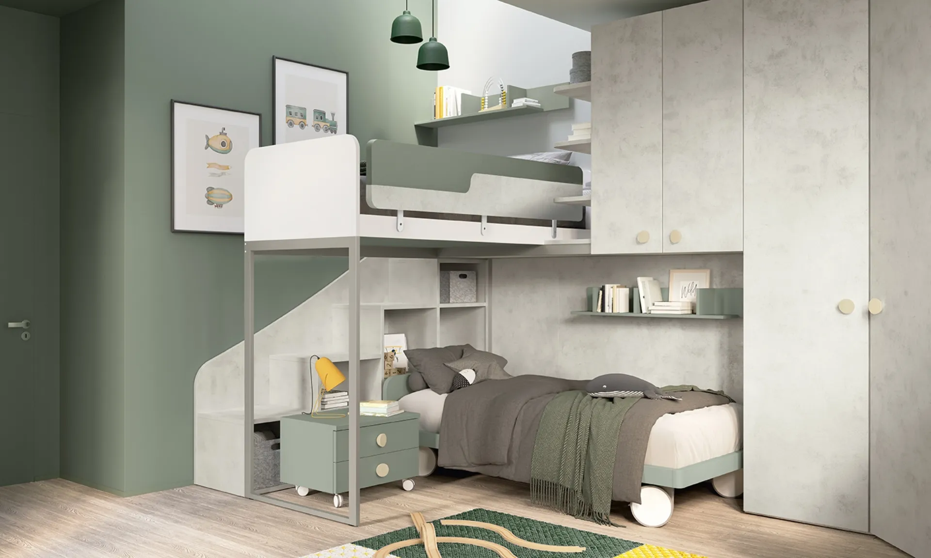 In negozio ci occupiamo di seguirti dalla scelta dell'arredamento per la camera alla progettazione del luogo dove i tuoi bambini cresceranno, giocando e sognando. Con la Cameretta Golf K49 di Colombini Casa in melaminico ti assicurerai un perfetto accordo di funzionalità ed ergonomia, ideale per la stanza dei tuoi figli. Le Camerette dei nostri figli sono lo spazio in cui passeranno i loro primi anni giocando e sognando, dunque è imprescindibile che lo spazio sia funzionale. Presentiamo nel nostro showroom svariate Camerette a soppalco moderne per bambini del marchio, ideali per seguirli durante la loro crescita. I nostri bambini trascorrono molto tempo della giornata nelle loro camere da letto: rendile adatte per dedicarsi alla scuola, giocare e dormire tutti i giorni.