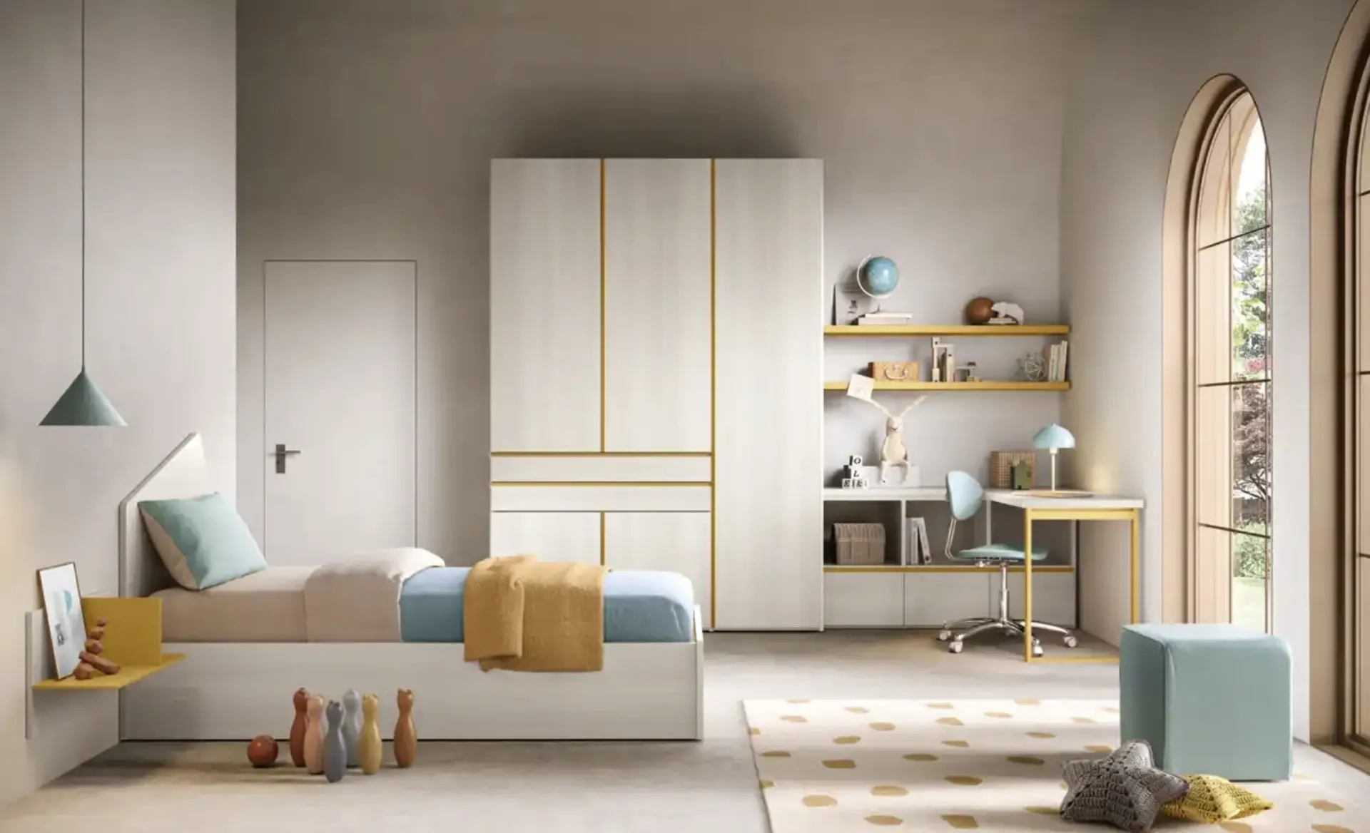 Moretti Compact Camerette soddisfa lo stile dei giovani e le richieste degli adulti con le sue Camerette moderne componibili, ideali per esigenze di ogni genere. Vieni nel nostro punto vendita e potrai toccare con mano tutte le più belle composizioni d'arredo componibili moderne di Moretti Compact Camerette per i più piccoli. Tonalità di tendenza e progetti articolati eccellenti connotano le più belle composizioni del noto e rinomato marchio che presentiamo nel nostro punto vendita. La Cameretta K113 di Moretti Compact Camerette in melaminico è un universo articolato da arredare con cura, coniugando diversi elementi accessori su misura.