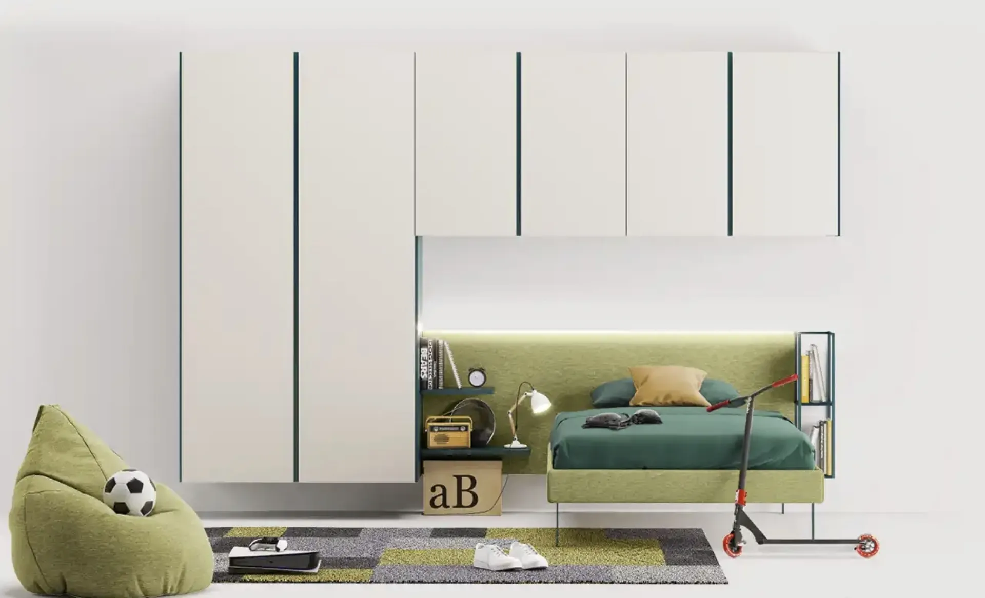 Con la Cameretta YGAD Moretti Compact Camerette in melaminico ti assicurerai un perfetto mix di ergonomia e sicurezza, ideale per la stanza dei tuoi figli. Presentiamo in negozio diverse Camerette a ponte design per ragazzi del brand, ideali per accompagnarli durante il loro sviluppo. I nostri bambini trascorrono molto tempo delle loro giornate nelle loro camere da letto: rendile adatte per fare i compiti, giocare e dormire tutti i giorni. In negozio ti guidiamo dalla scelta dei mobili per la camera alla progettazione del luogo nel quale i tuoi bimbi cresceranno, divertendosi e sognando.