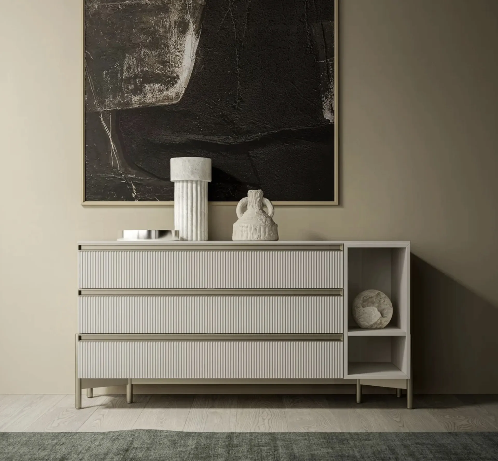 Comò Ego 03 di SantaLucia: contattaci e ottieni informazioni sulle nostre proposte d'arredo e arreda la camera come l'avevi immaginata. La zona notte comprende anche i Comodini: contenitori indispensabili che consentono di ordinare piccole cose e potere ususfruire di piani di appoggio per vari utilizzi. Valorizza i tuoi interni scegliendo composizioni di mobili coordinati o ricrea inediti accostamenti di stile e cromie per merito del catalogo di mobili e oggetti accessori per la zona notte che proponiamo, come il modello in laccato opaco presente in foto, anche realizzabili su misura per te.