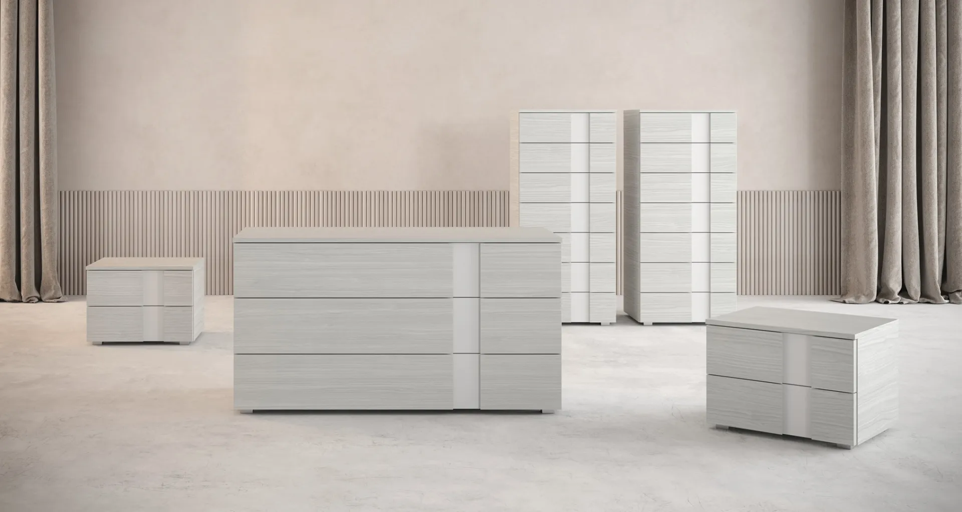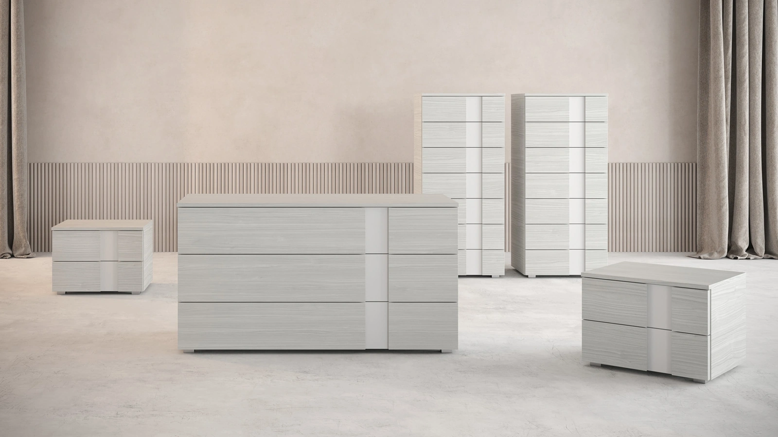 Materiali pregiati e lavorazioni eccellenti per il Gruppo Notte Riva di Giessegi in in melaminico, disponibile in negozio con le altre diverse idee della firma, per fare della zona notte un luogo che rifletta i tuoi gusti. Ti chiedi come abbinare letti, armadi e comodini? Con il modello di Giessegi visibile in foto avrai un pezzo di arredamento studiato per un luogo dai richiami moderni.