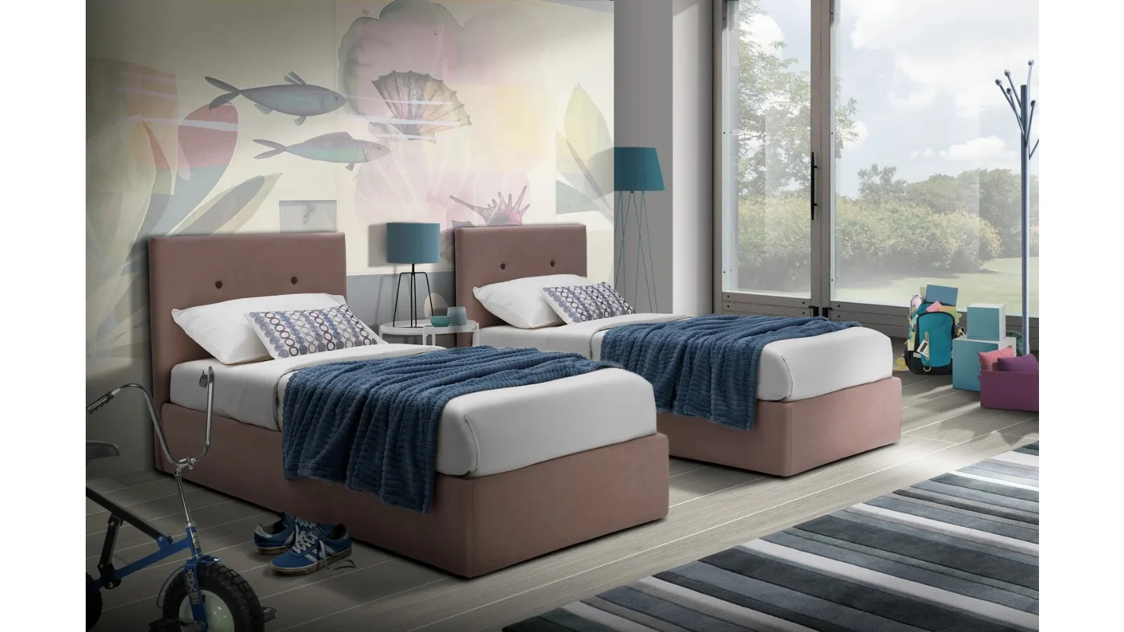 Il Letto singolo in tessuto Ischia di Artigianaletti completa la camera dei più piccoli garantendo il sonno più profondo per i tuoi bambini