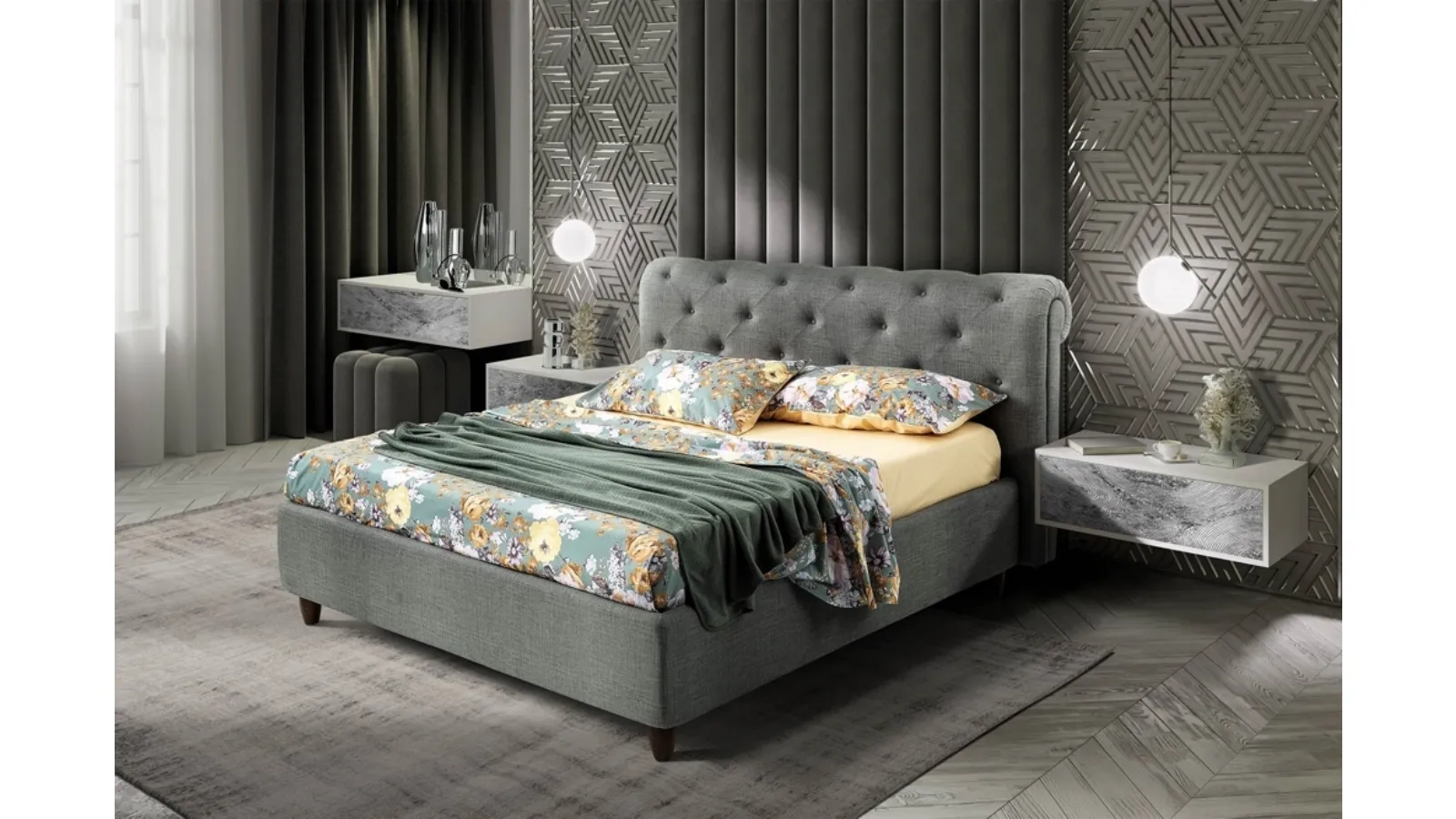 I Letti matrimoniali imbottiti dell'azienda, specialista nella realizzazione di Arredamento Casa per la camera da letto, sono pensati per essere abbinati a mobili e complementi di ogni tipo, come armadi e comodini, abat jour e piantane. Il Letto con testiera Boheme di Artigianaletti crea uno spazio familiare e confortevole in ogni camera, garantendoti il sonno più profondo e uno stile unico. Scegli cromie e finiture e realizza il tuo concept d’arredo nella camera, progettandola proprio come l'hai sempre sognata. Durante l'acquisto di un buon modello di letto, valuta attentamente le sue misure, i materiali, la forma e il suo stile rispetto al resto dell'arredo. Se desideri una soluzione in tessuto, il modello mostrato in foto è connotato da materiali pregiati e forme decise, che invitano a goderti un sonno tranquillo e ristoratore.