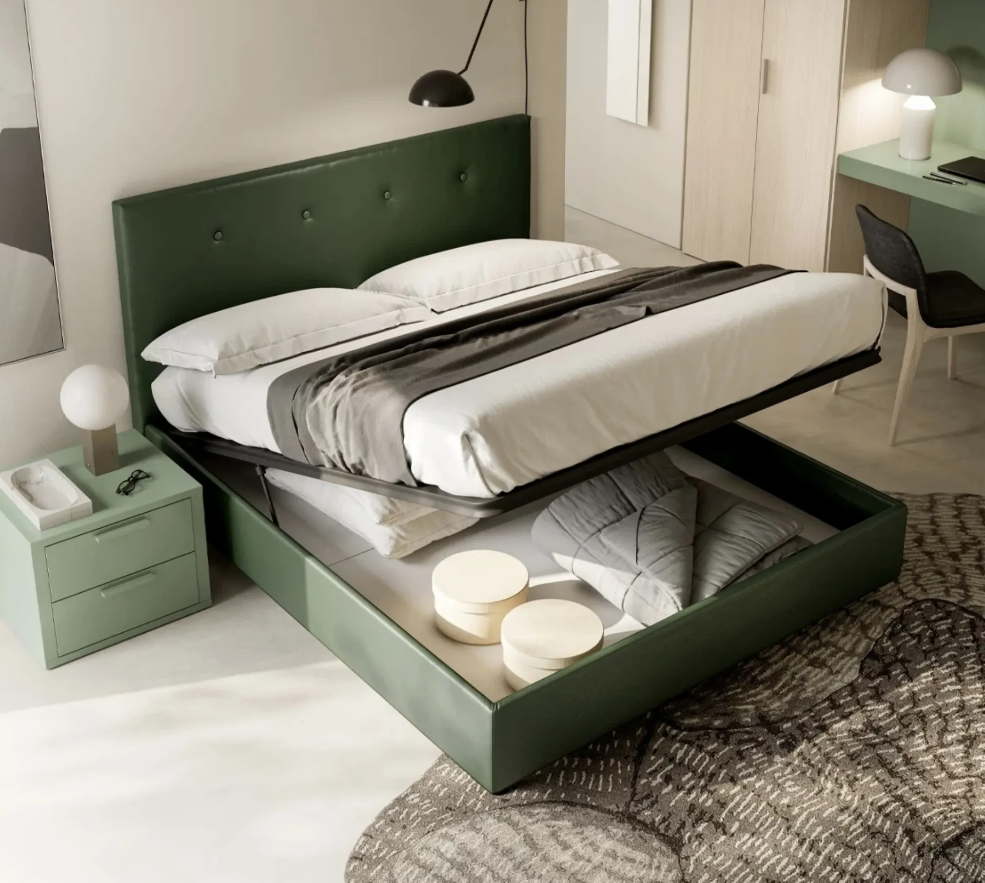 La camera da letto è lo spazio di casa che più interpreta la personalità di chi la usa, locale per eccellenza dedicato al riposo, alla distensione e alla privacy. Il Letto matrimoniale Eros di SantaLucia è una delle più originali soluzioni dell'azienda, specialista del riposo, capace di garantire funzionalità, comfort e un design unico. Nel nostro sito potrai trovare le migliori proposte dei migliori brand specializzati nell'arredo per la camera da letto, con un’ampia possibilità di caratterizzazione in quanto a tonalità e abbinamenti, accessori e tanto altro. Scopri un ricco catalogo di letti con contenitore dei migliori brand di Arredamento Casa disponibili nel nostro showroom e valorizza la tua camera da letto.