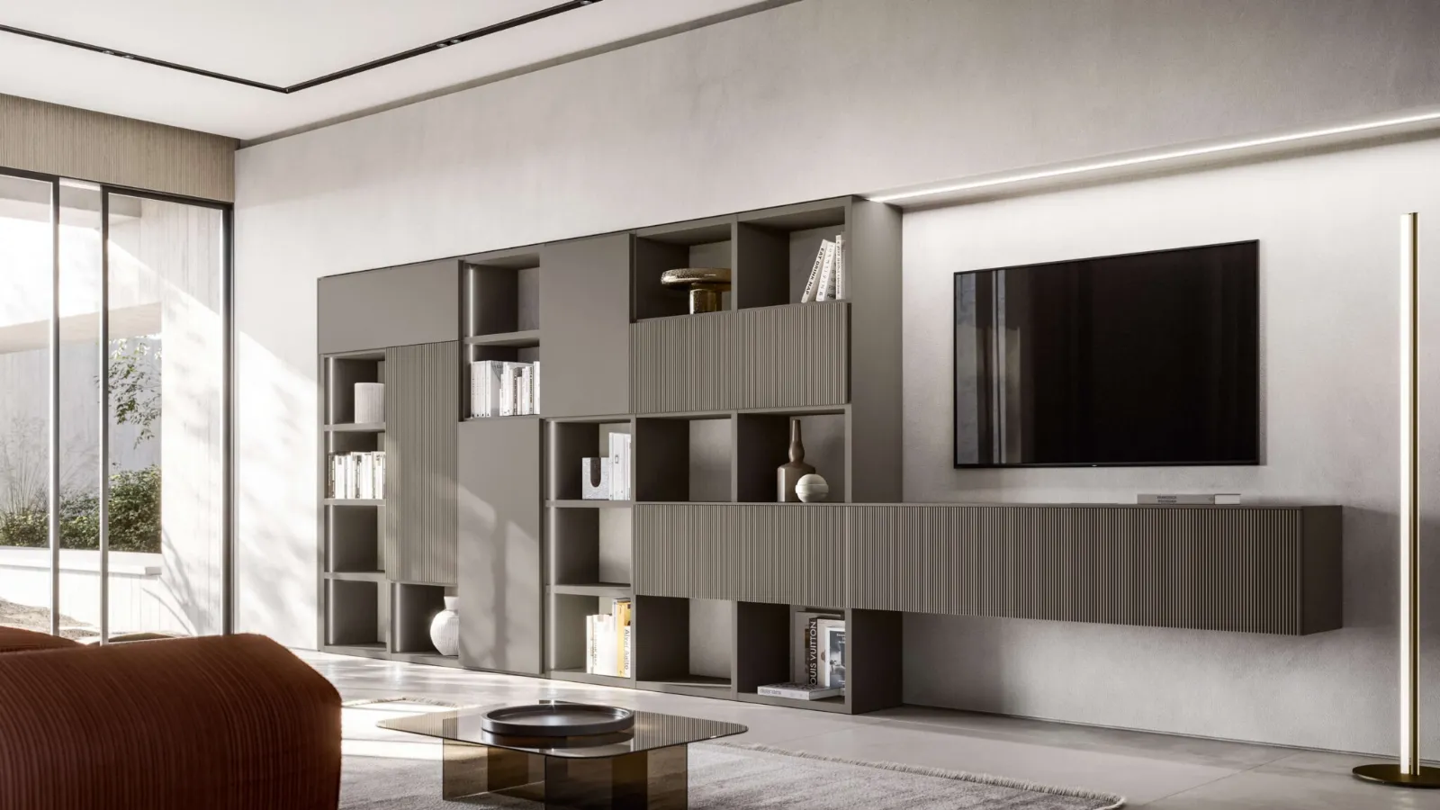 Il modello visibile in foto è appartenente alla collezione di Librerie moderne a muro della firma SantaLucia