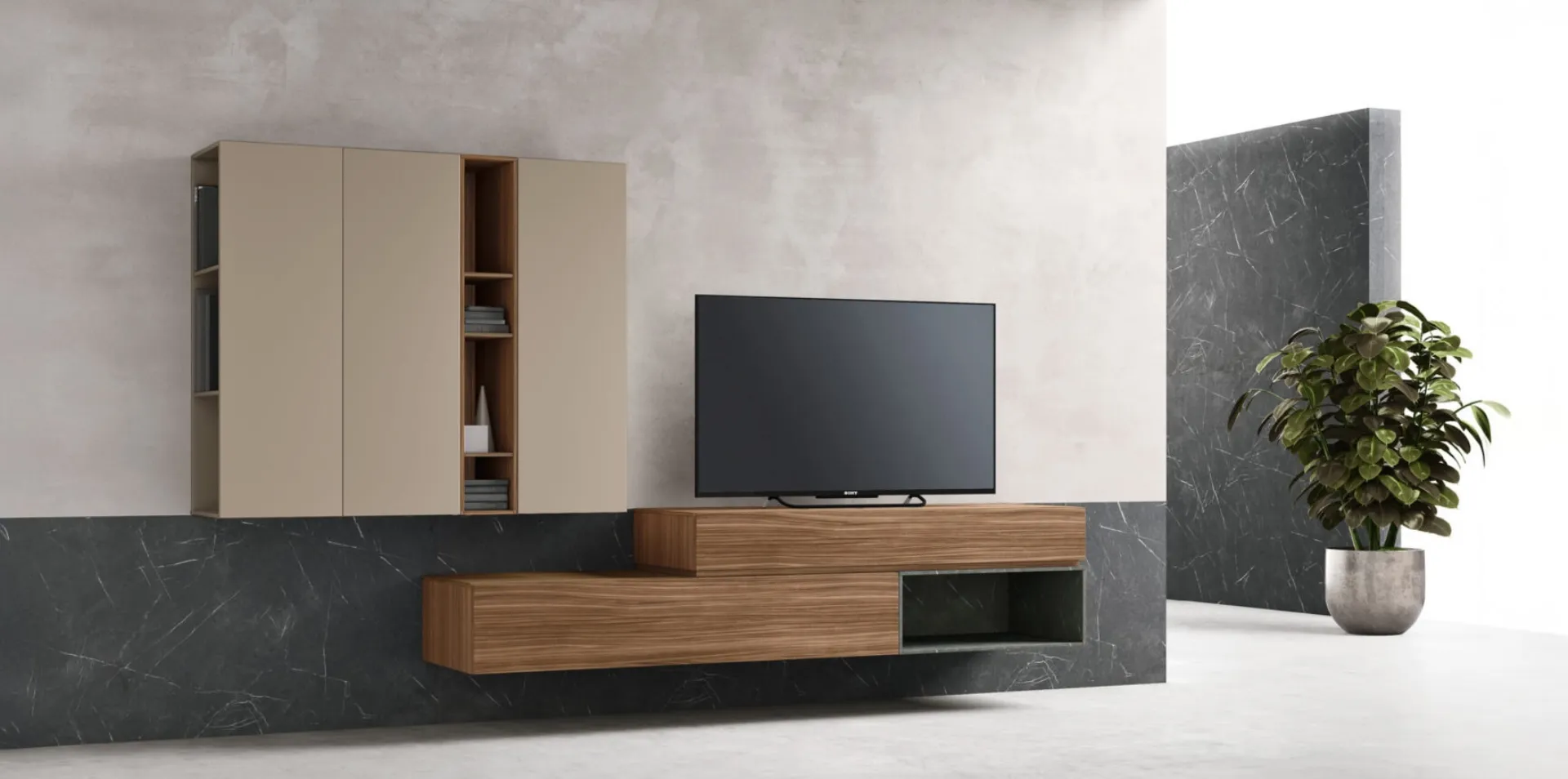 In una ricca collezione di Mobili Porta Tv moderni prodotti da Maronese, assume particolare valore il modello in melaminico mostrato in foto, mix di praticità e design. I Mobili Porta Tv sono arredi per la zona giorno destinati a vari utilizzi: sono alleati irrinunciabili per arricchire e ottimizzare lo spazio, rendendolo vivibile. Per tenere in vista la televisione e ordinare la tua oggettistica, un mobile porta tv in melaminico dai richiami moderni di Maronese come questo non ti deluderà. La zona giorno occorre che sia un luogo di fascino, vivibile e ben arredato perciò la scelta di un buon modello di porta tv fa una gran differenza.