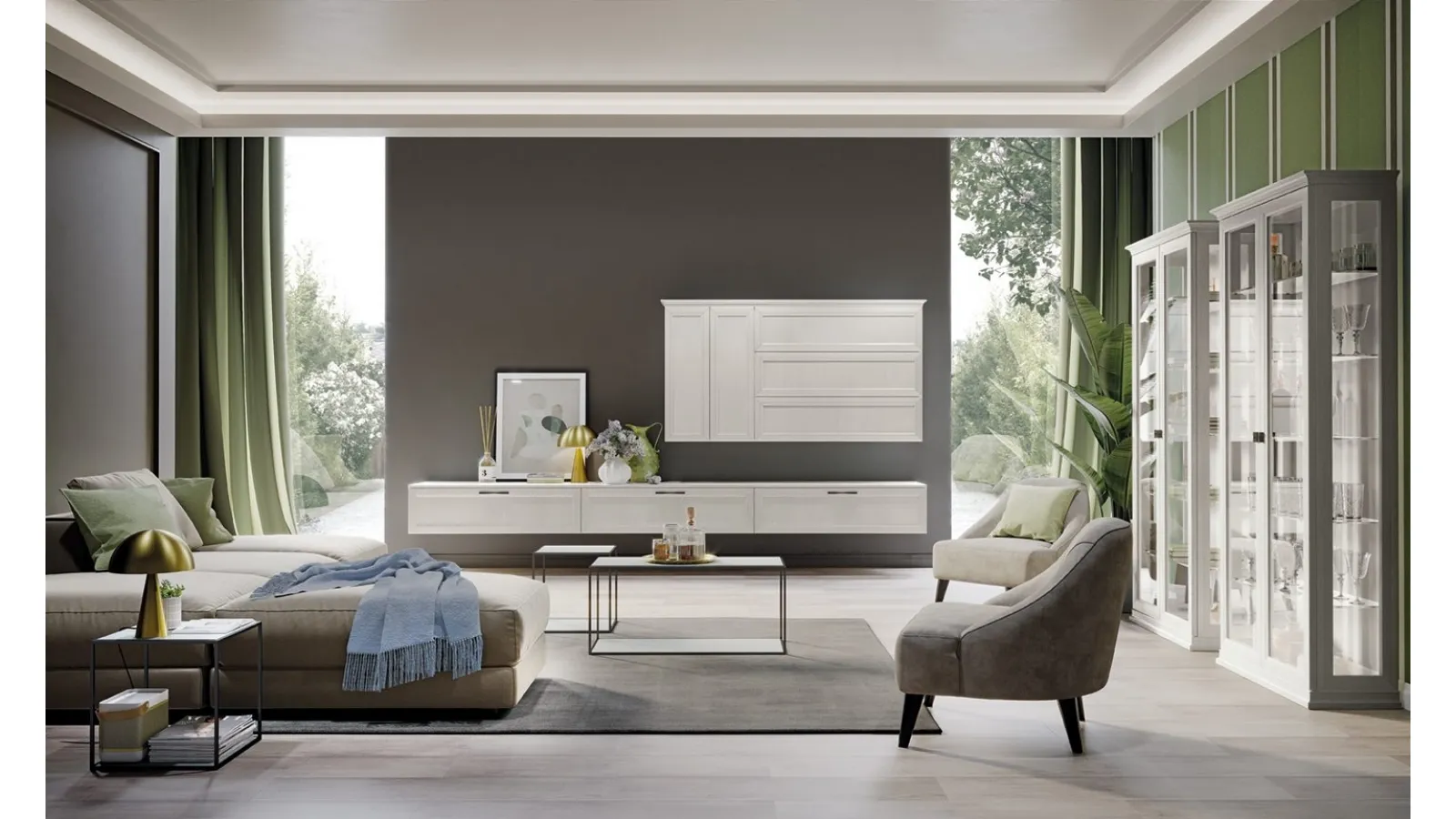 Parete attrezzata Arcadia L013 di Colombini Casa per il soggiorno realizzata in melaminico