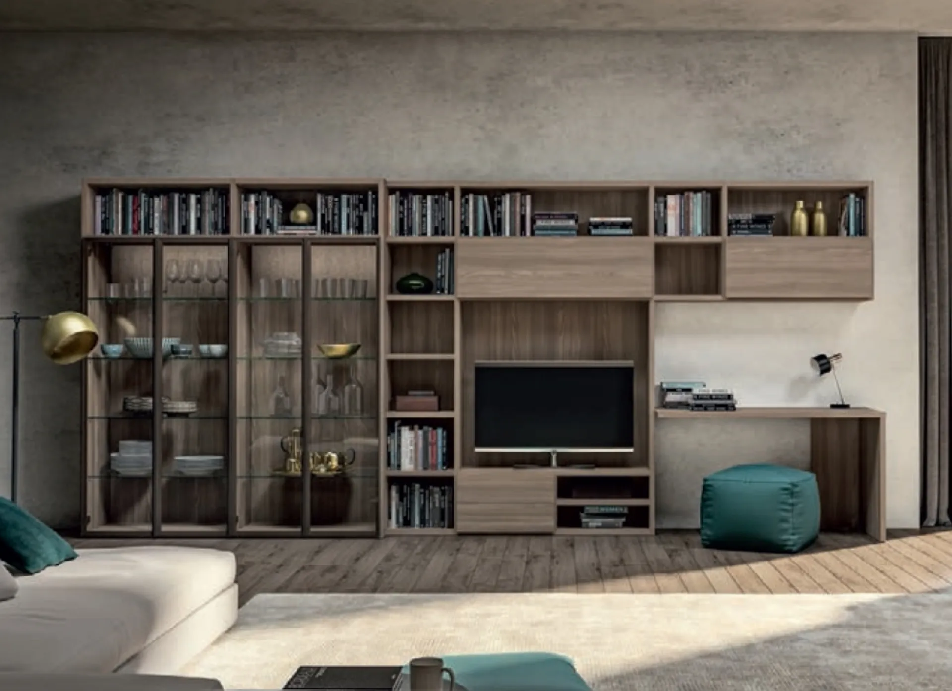 Anche in un living di dimensioni contenute, questo tipo di arredo riesce a ottimizzare gli spazi valorizzando ogni angolo e assicurando grandi doti di componibilità tipica delle soluzioni moderne. Se cerchi mobili salvaspazio e realizzabili su misura, contattaci e scopri di più sull'Arredamento Casa dei migliori brand. La Parete Attrezzata Living GF5015 di Abitare Mobilstella nell'immagine, realizzata in melaminico, risolve le più personali esigenze abitative di stile e spazio senza rinunciare alla ricerca estetica. Un po’ librerie, un po’ mobili contenitori ed espositori: le Pareti Attrezzate sono ideali per arredare un luogo operativo e pratico.