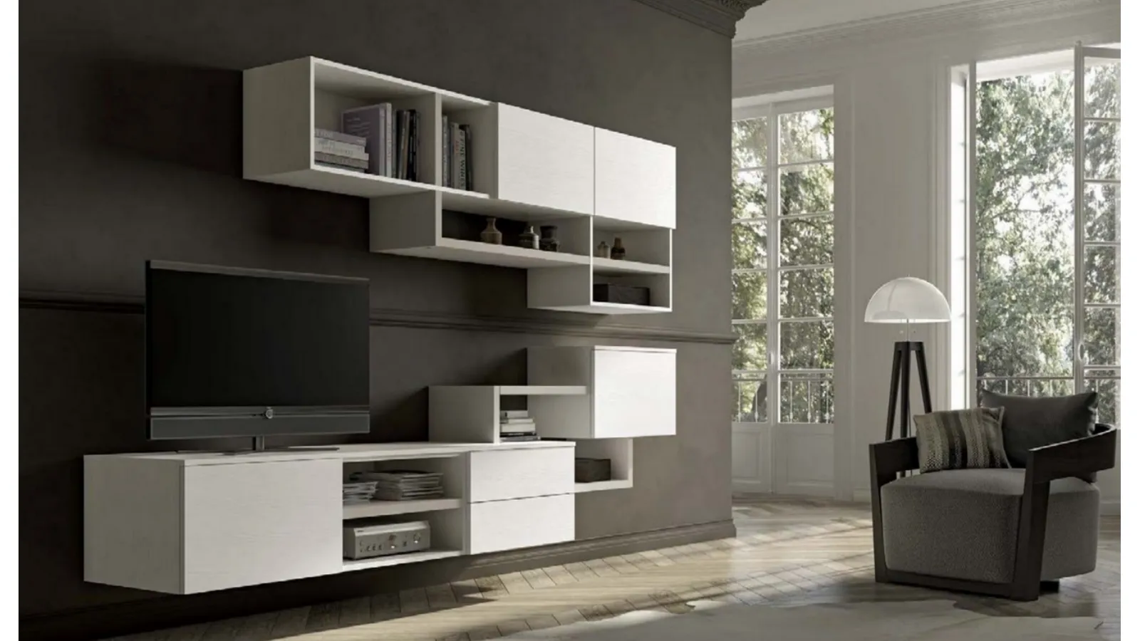 Parete attrezzata dalle linee moderne con finitura in laccato opaco di Abitare Mobilstella