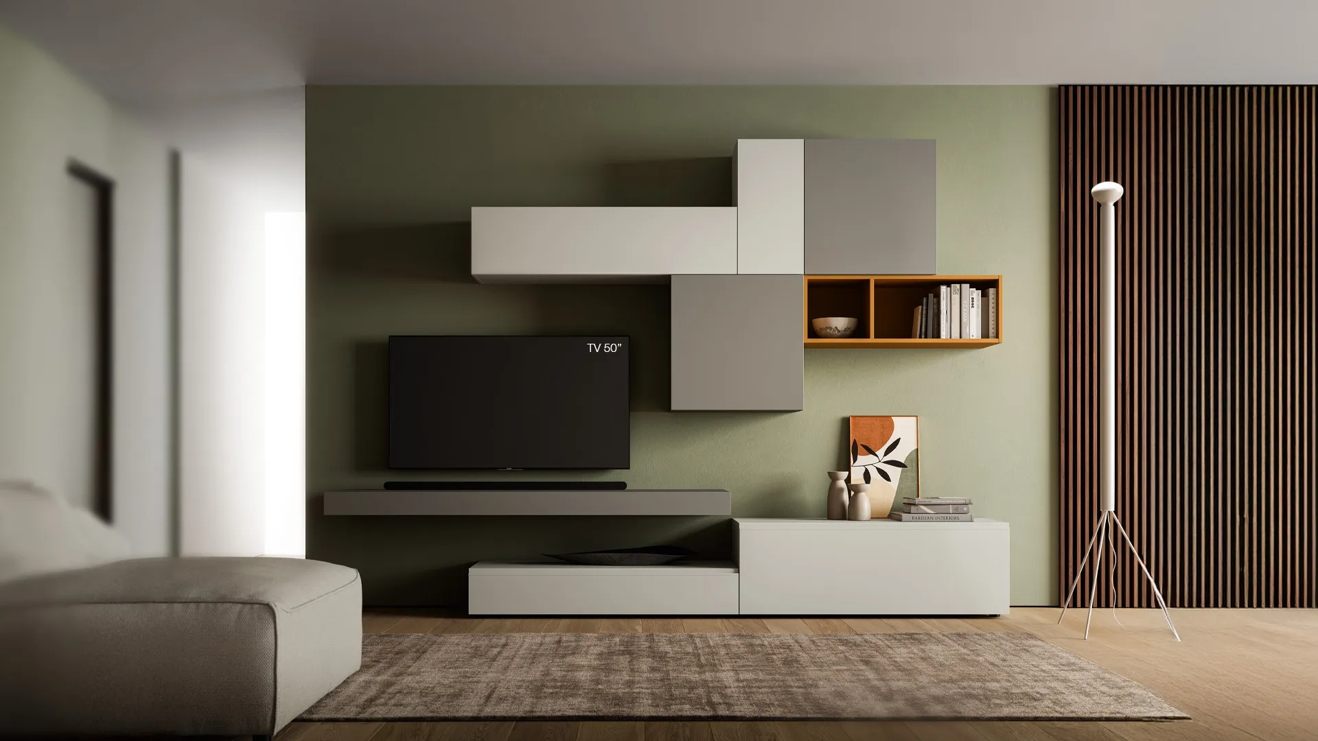 Attraverso un gioco dinamico di accostamenti fra componenti a giorno o vani chiusi, le Pareti Attrezzate moderne arredano il living sfruttando bene ogni spazio. Questa parete attrezzata è una delle soluzioni del marchio e ti consentirà di allestire la zona giorno secondo le più particolari esigenze abitative. Le Pareti Attrezzate hanno assunto un posto fondamentale nella zona giorno delle nostre case: sono arredi plurifunzionali e salvaspazio sempre realizzabili su misura.