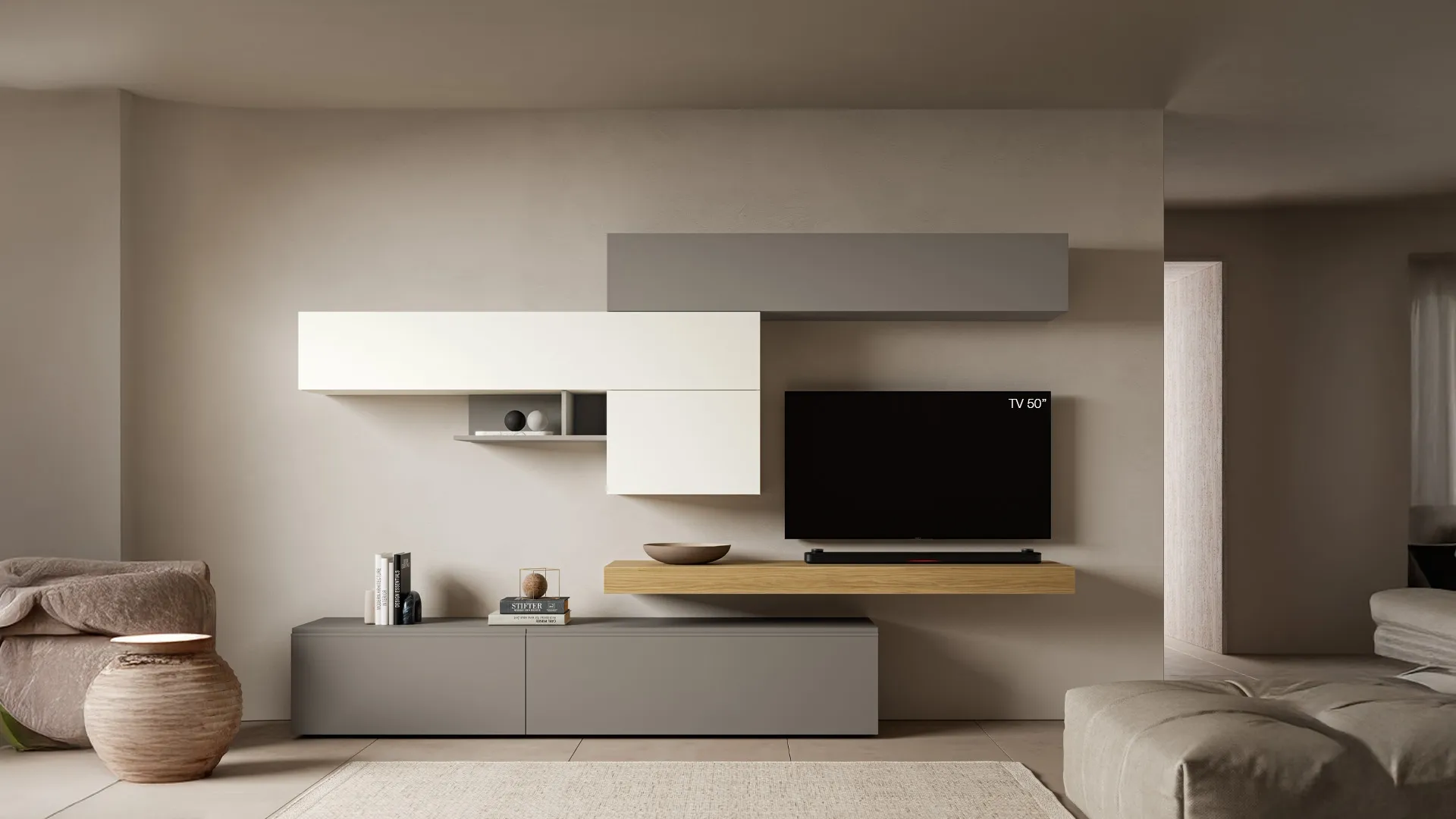 SantaLucia mette a disposizione originali modelli di mobili soggiorno, diversi per stile e conformazioni, finiture e accessori: scopri in negozio l'Arredamento Casa delle migliori marche. Poiché il living deve essere uno spazio agevole e di grande valore estetico, sono necessari alcuni arredi belli e funzionali come le Pareti Attrezzate. La Parete Attrezzata Pratico PTG413 di SantaLucia nell'immagine è una delle più esclusive soluzioni d’arredo sul mercato: massima componibilità e le diverse opportunità di progettazione la rendono bella e di grande qualità. Lasciati stuzzicare da una ricca gamma di arredi per la zona giorno e potrai trovare la parete attrezzata che fa al caso tuo.