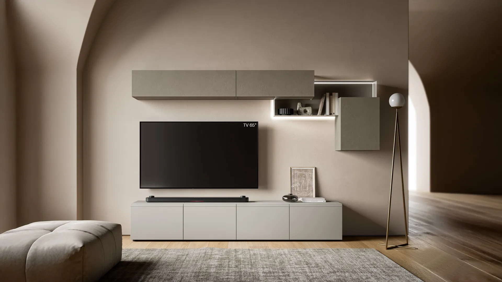 SantaLucia propone originali modelli di mobili soggiorno, diversi per stile e forme, finiture e componenti: scopri nel nostro punto vendita l'Arredamento Casa dei migliori produttori. I mobili soggiorno in melaminico dalle linee moderne come il modello nell'immagine sono veramente versatili e capaci di ammobiliare la zona giorno usufruendo al meglio di ogni angolo. La Parete Attrezzata Pratico PTG431 di SantaLucia nell'immagine è una tra le più belle soluzioni d’arredo sul mercato: l'alta componibilità e le differenti opportunità di progettazione la rendono pratica e sofisticata. Poiché il living deve essere uno spazio funzionale e di grande valore estetico, sono necessari alcuni mobili belli e funzionali come le Pareti Attrezzate.