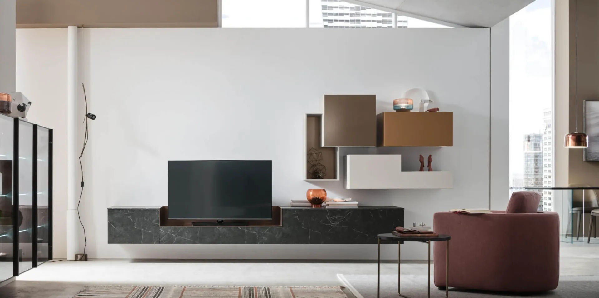 Questa soluzione costituisce tutta l'eccellenza che il brand garantisce grazie a pluriennale competenza e grande dedizione nel settore dell'arredo e del design. Anche in un soggiorno di dimensioni contenute, questo tipo di arredo riesce a organizzare al meglio gli spazi usufruendo al meglio di ogni angolo e assicurando componibilità su misura tipica delle soluzioni moderne. Se cerchi mobili salvaspazio e realizzabili su misura per te, contattaci e ottieni informazioni sull'Arredamento Casa delle migliori marche. La Parete Attrezzata Seta Comp SU2201 di Maronese nell'immagine, con finitura in melaminico, risolve le più particolari esigenze abitative di stile e spazio senza rinunciare alla ricerca estetica.