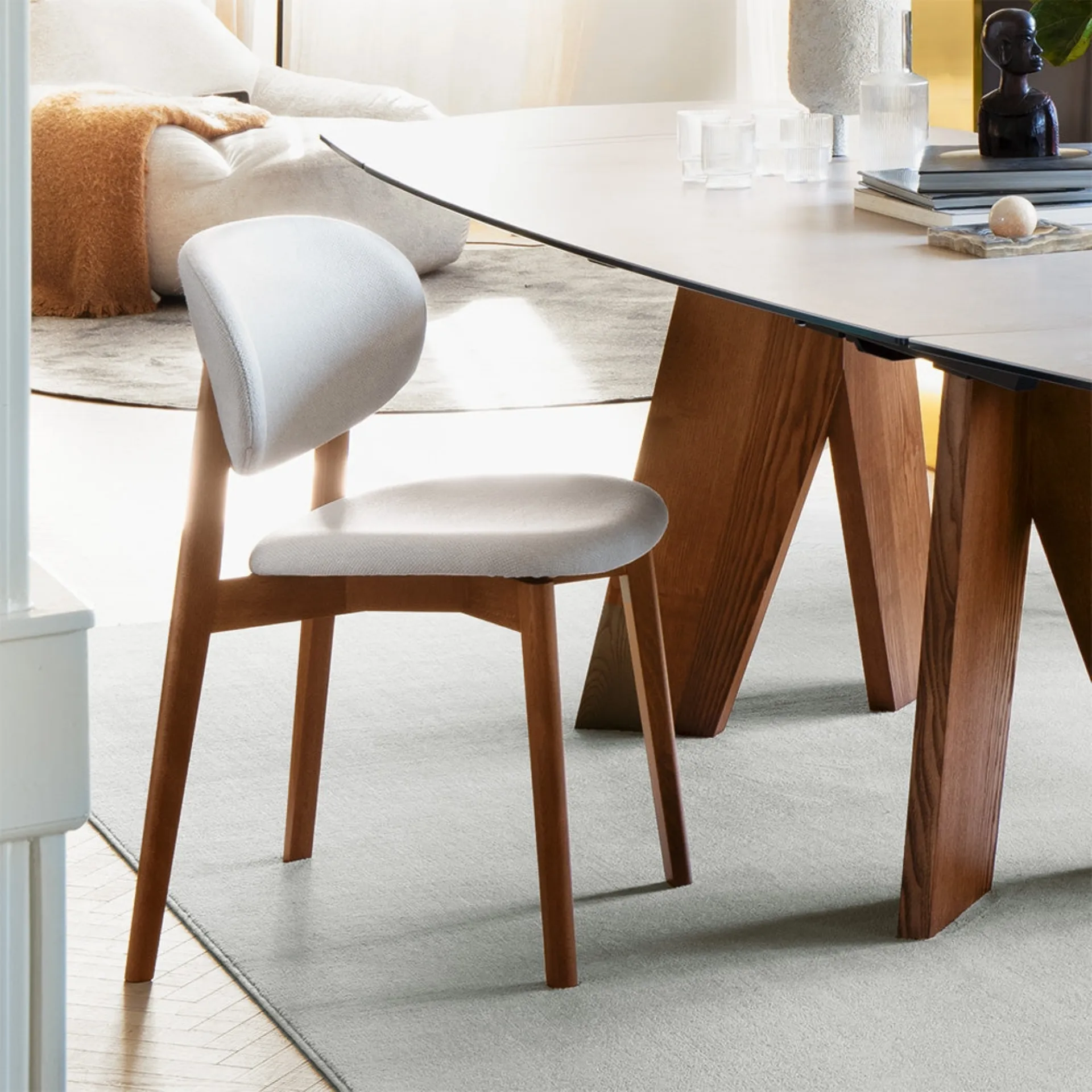 La cucina e la zona pranzo non saranno veramente complete di tutto il necessario senza le giuste Sedie, da abbinare al resto dell'arredo e allo stile della tua abitazione. Un ricco catalogo di mobili e complementi ti attende nel nostro punto vendita, dove troverai le Sedie fisse in tessuto delle migliori marche. Se vuoi valorizzare ambientazioni moderne, il modello mostrato in foto ben si inserisce in un locale di questo stile. Sedia Eide Soft di Connubia: prediligi una delle più esclusive proposte della marca, specialista del settore Arredamento Casa. Con questa soluzione comoda, ergonomica e esteticamente gradevole potrai completare il tuo progetto d'arredo e valorizzare la stanza dove ci si ritrova con amici e parenti.