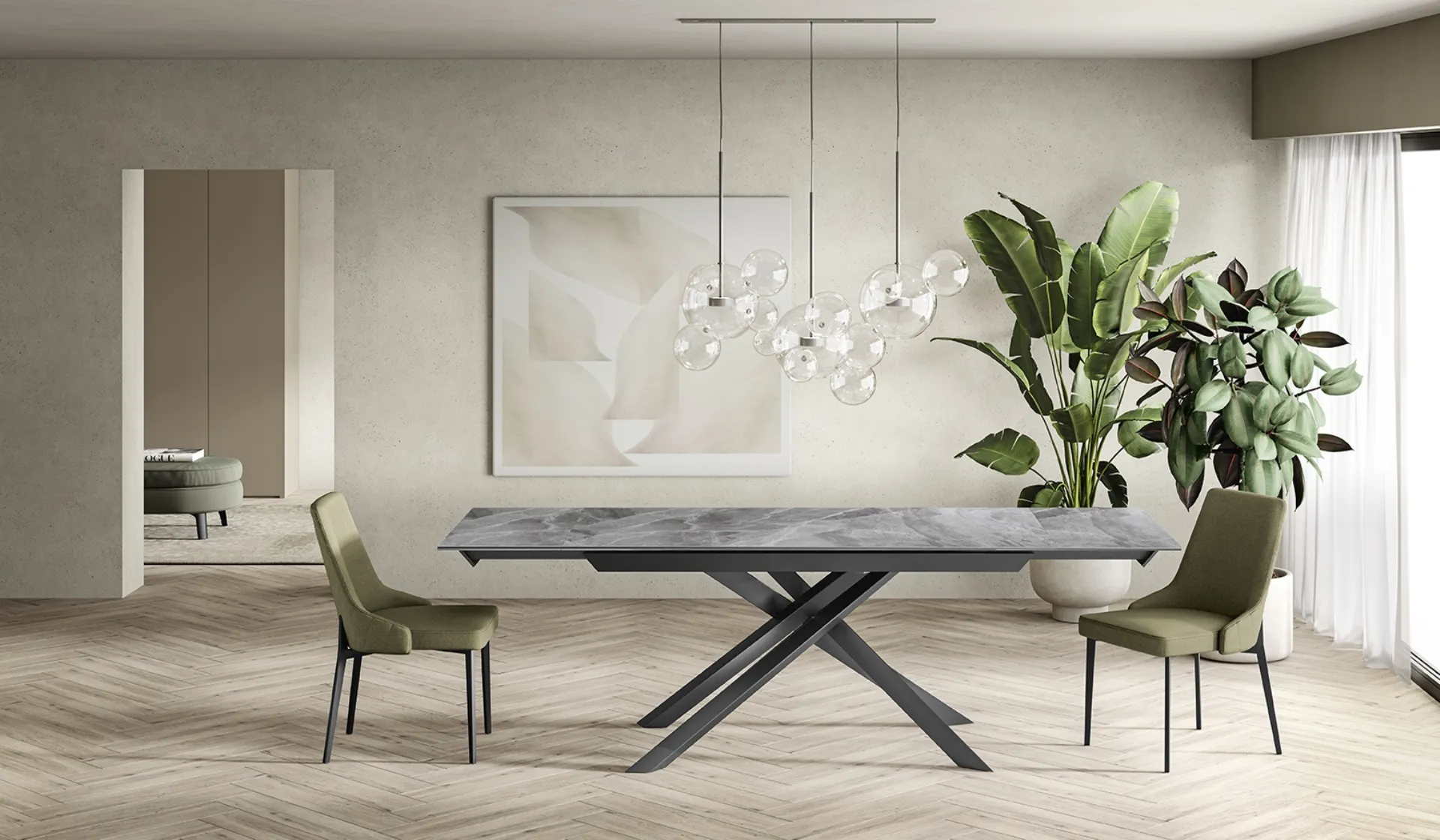 Scopri la nostra collezione di Tavoli allungabili moderni, dove troverai anche il modello Cross in foto