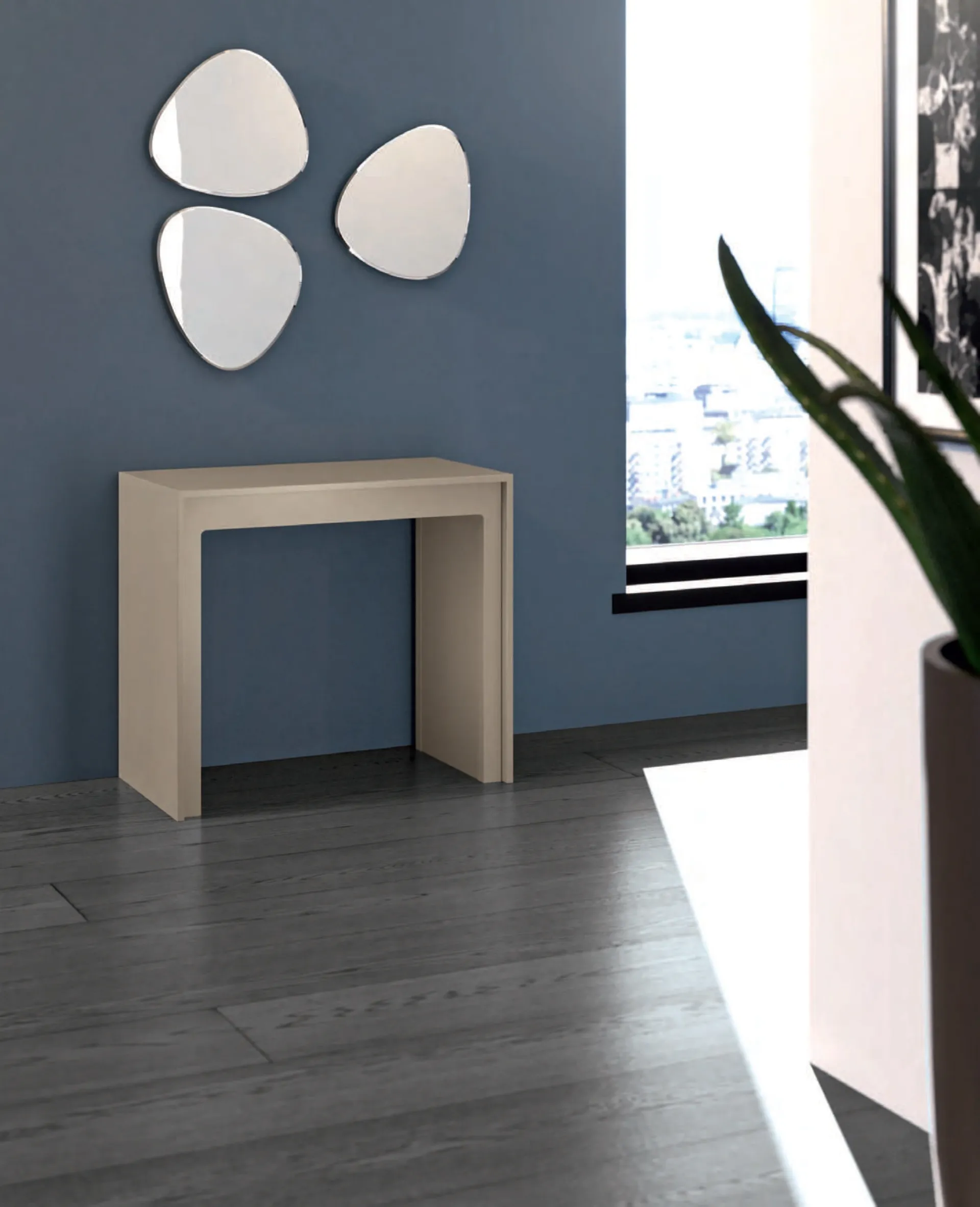 Un tavolo che si rispetti deve essere in materiali pregiati, cosicché sia resistente e preservi negli anni il valore estetico che lo connotano. Se vuoi assicurarti un elevato contenuto estetico nei locali domestici, ma vuoi anche ottimizzare gli spazi, allora le nostre soluzioni fanno al caso tuo. Tavolo cosolle allungabile Pinocchio di Stones: nel nostro punto vendita ti sta aspettando una scelta quasi infinita di composizioni arredative di elevata qualità. L'esclusivo marchio Stones presenta un ricco catalogo di Tavoli da pranzo consolle, tra cui anche quelli ideali per arricchire ottimamente locali moderni. Uno dei nostri modelli di Tavoli consolle sarà in grado di arricchire il tuo progetto d'arredo con funzionalità e stile.