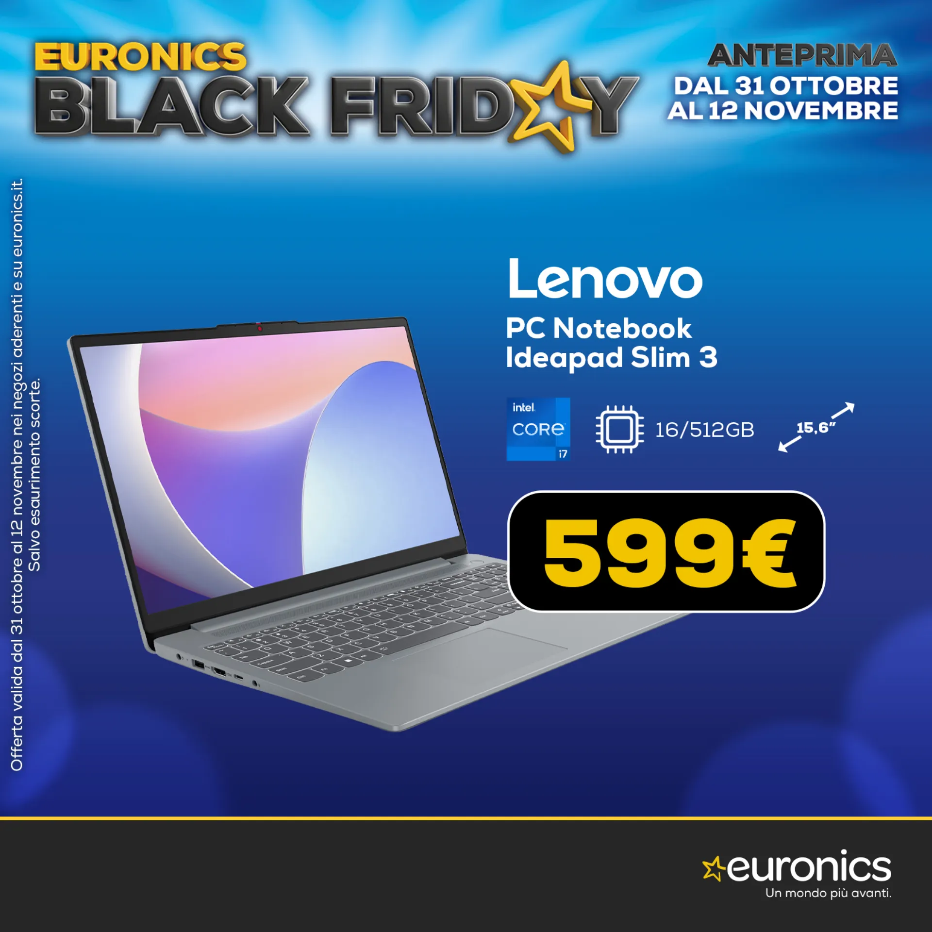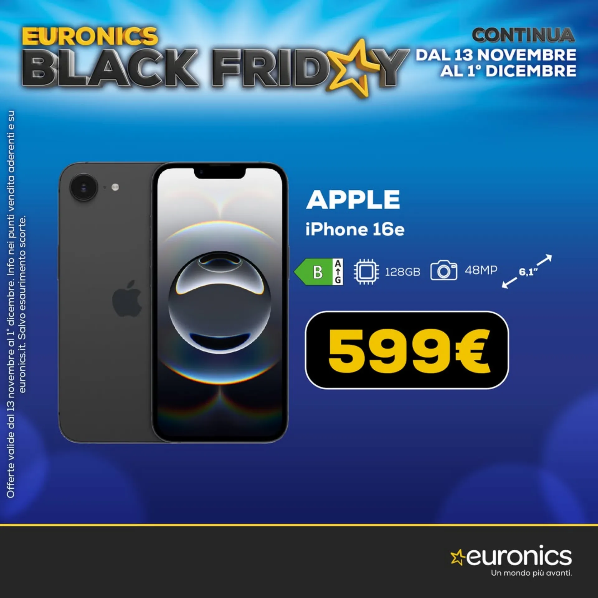 Preparati al Black Friday più atteso dell’anno! Da Euronics, dal 13 novembre al 1 dicembre, trovi offerte imperdibili su una vasta gamma di prodotti: TV, smartphone, elettrodomestici, computer e molto altro.
