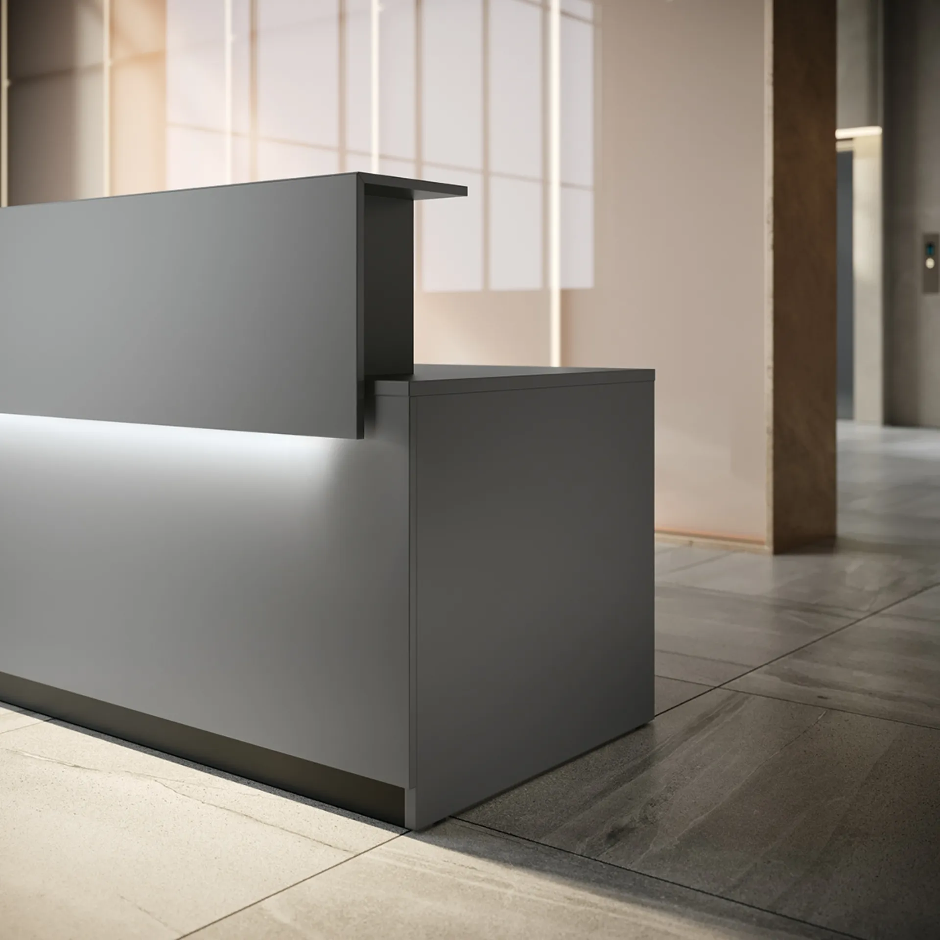 Colombini Office presenta arredi di qualità eccellente, sempre capaci di dare risposta a svariate richieste per quanto riguarda sia il valore estetico che la funzionalità. In negozio potrai toccare con mano tutte le più esclusive composizioni arredative di Arredo Ufficio in melaminico disponibili in commercio, sempre di qualità eccellente. La proposta in foto, tra i diversi modelli di banconi reception firmati Colombini Office, conferirà personalità e stile agli spazi, attrezzandoli mixando razionalità e coerenza. Costruisci il tuo spazio lavorativo con soluzioni di banconi reception in melaminico della firma: la completa offerta di mobili e complementi per il tuo ufficio ti aspetta in negozio.