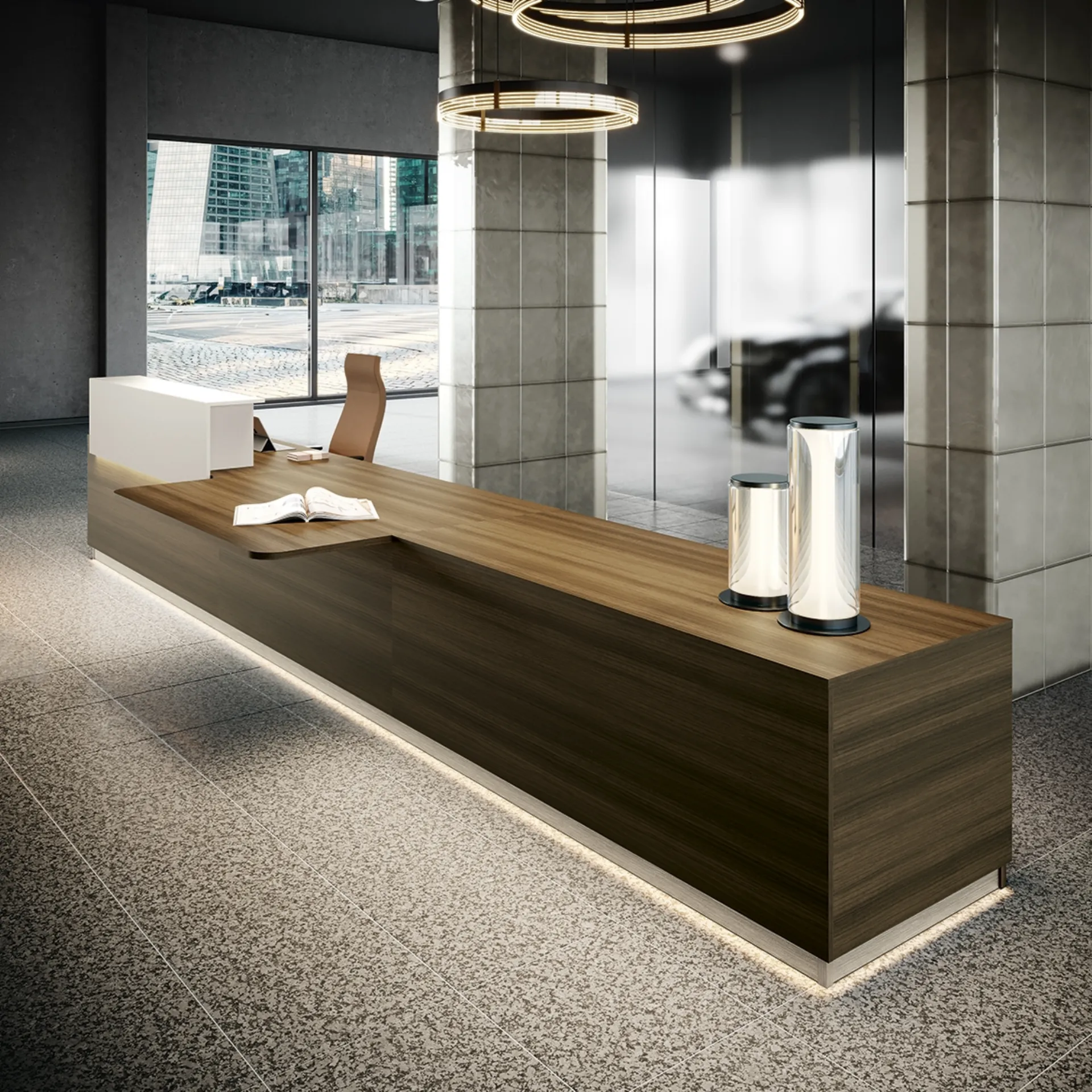Reception Class 04 di Colombini Office: è uno tra i migliori esempi di arredi per gliambienti lavorativi pratici e belli da vedere del noto marchio. Entra a vedere nel nostro negozio molteplici modelli di banconi reception di qualità eccellente, sempre realizzati in materiali di qualità e resistenti negli anni. Per il tuo Arredo Ufficio hanno un ruolo di centrale importanza le composizioni arredative con banconi reception in melaminico, studiate per attrezzare lo spazio. In showroom puoi visionare in prima persona le più esclusive soluzioni arredative di Arredo Ufficio in melaminico, sempre belle e resistenti e ideali per ambienti di ogni genere.